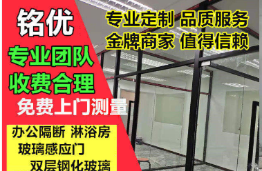 重庆铭优装饰专业设计制作各种办公室隔断、各类感应自动门、钢化玻璃,烤漆玻璃、 夹胶玻璃、阳光房,铝合金门窗,淋浴房、移门、地弹簧无框门、2~22毫米安全钢化玻璃 各色装饰镜子、KTV宾馆艺术玻璃工程等。